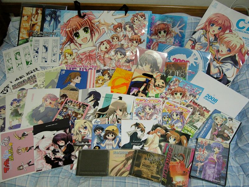 まず冬コミ 見事に落選してしまったので初の一般参加。 好きなだけ買い物をしてきましたよ。 こんな感じ~ 今までのコミケはサークル入場だった上に、適当にぶらついて目に付いたものを買うって形でしたが、今回は事前に回るサークルをチェックしたりして、かなり楽しかったです。 ただ始発はつらかったけどね…寒いし眠いし… あと書くの遅すぎですが、知り合いのTrick or Treatさんのところでゲストとして描かせてもらいました。 ハルヒ本です。百合本です。 俺はもちろん(?)朝倉×長門を描きました。青い子って良いよね そして知り合いのサークルさんのところを何個か回ったんですけど、みんなうまい 自分も見習わなきゃなぁと思いました。 もっと練習しないと ていうか描かないと(ぇ そんなわけで2008年一発目 正月絵を描きましたよ~ 黄色い布を体に巻いた由乃ん ハイ、時間切れでした。模様とかかけねええええええええ 今年の目標は、向上心を持つことと、エロい絵を描けるようにすることですね エロい絵を描ける人ってホントに尊敬できますよね そんなわけで今年もよろしくお願いします。 PR COMMENTSCOMMENT FORM TRACKBACKSTRACKBACK URL |